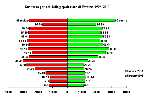 La piramide della popolazione mostra, in termini quantitativi, quanto sarà rilevante fra circa 10 anni il cambiamento demografico peraltro già in atto da diversi anni. La popolazione residente nel Comune passerà da 379.687 abitanti nel 1997 a 326.546 nel 2011 con una diminuzione dei residenti pari a 52.364 unità. Aumenterà il peso delle classi anziane (più di 65 anni) dal 24,3 nel 1997 al 29,9 nel 2011 mentre si avrà un calo nel peso della popolazione in età lavorativa (dai 15 ai 64 anni) che passerà dal 66,4 al 59,2 per cento.