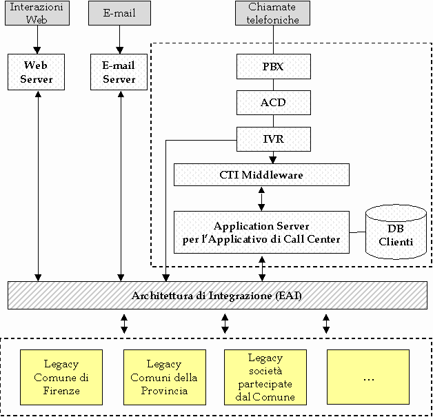 Riguardo ai canali di accesso il Centro servizi che verrà progettato e attivato in e-Firenze gestirà le tecnologie e i sistemi per garantire la massima fruibilità ed accessibilità per gli utenti. In particolare nel Centro servizi saranno gestite direttamente la componente di front-office tecnologico, che comprende: le interfacce di tipo web, Call center (con operatori e con sistemi IVR), i sistemi di interfaccia verso la telefonia mobile attraverso i protocolli SMS e WAP.